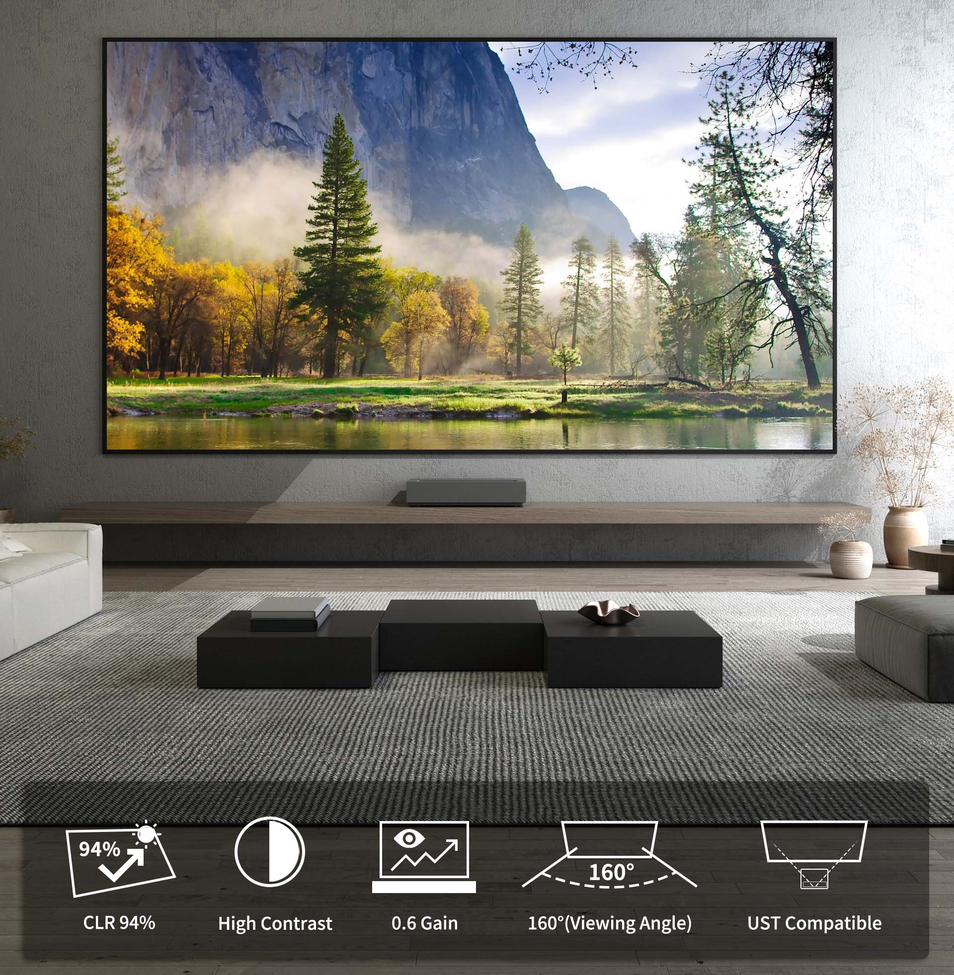 Very nice UST projector + CBSP alr screen + slider tray bundle, I purchased this combo from WUPRO BUY, it replaced my previous 70" TV and now I can watch the 100’ big screen with the lights on and during the daytime, which is exactly the visual experience I wanted.