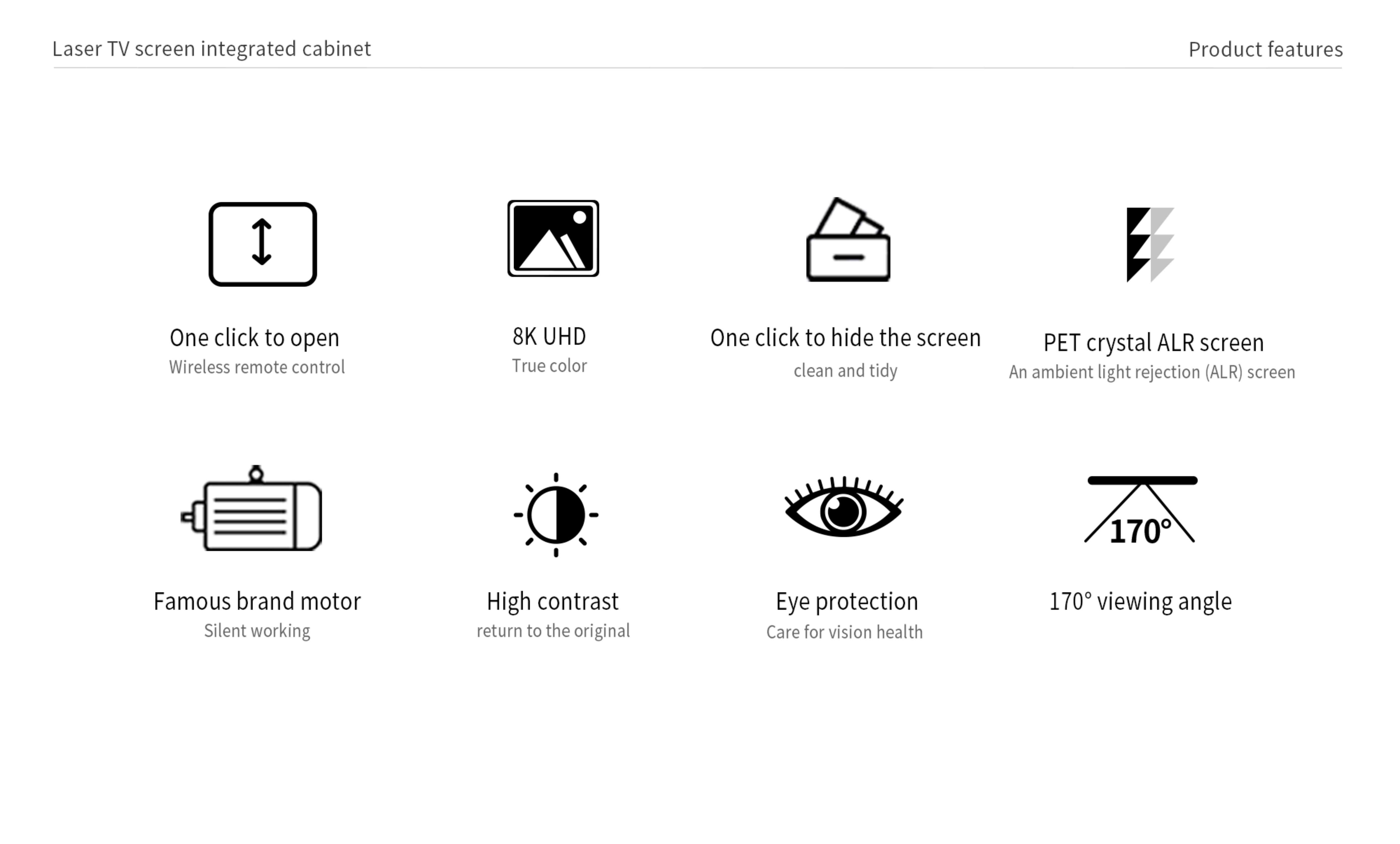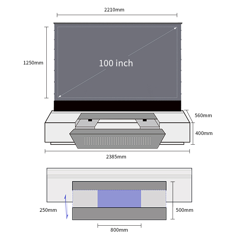 Slovní skříň shoda s typem projektoru: Ultra Short Throw Projektor (prosím, kontaktujte nás pro konkrétní dostupnost modelu)