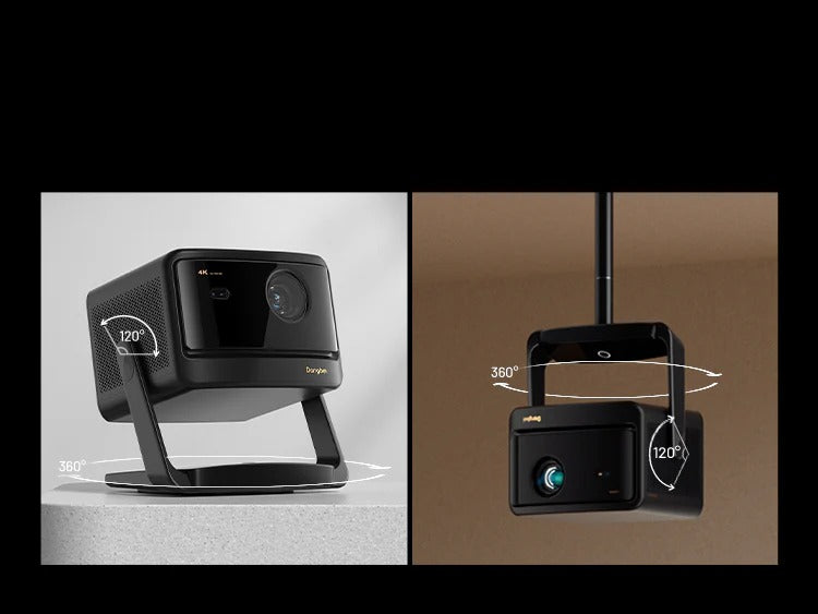 The built-in stand lets you rotate 360° horizontally and tilt 120° vertically. Rearranging the room? No problem. You can easily adjust the projection angle anytime, anywhere-for the perfect setup every time.