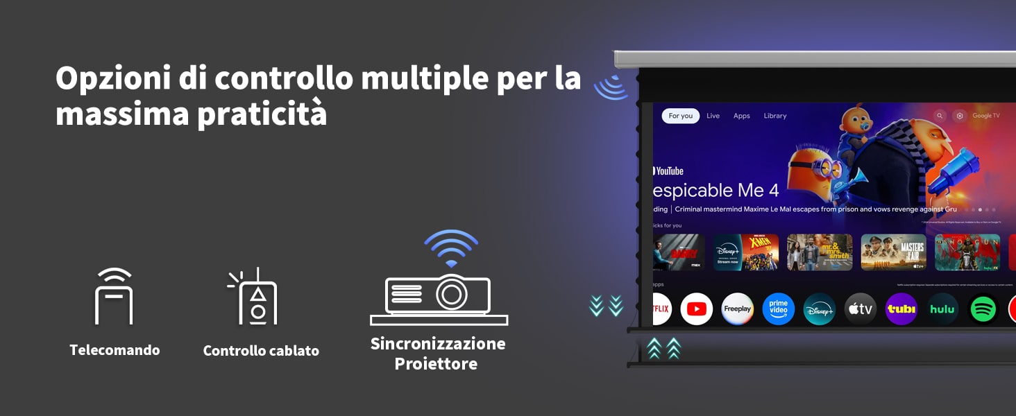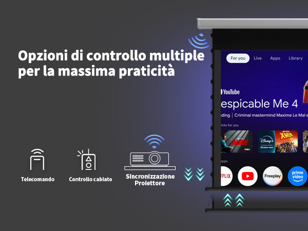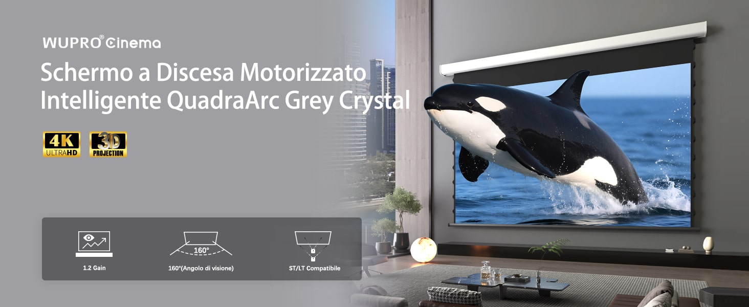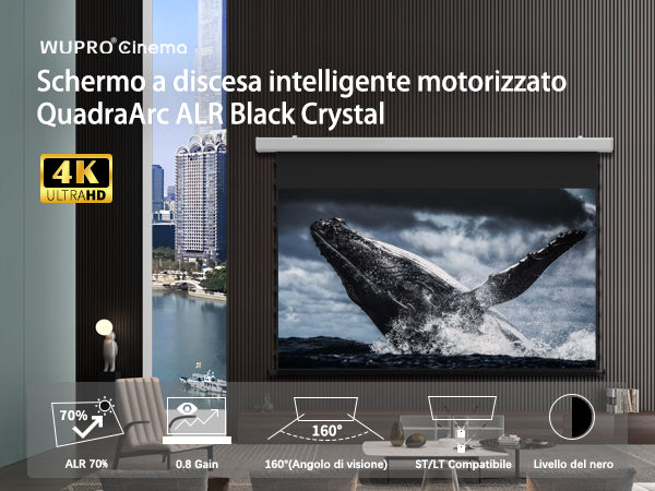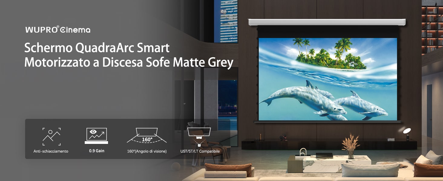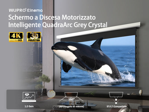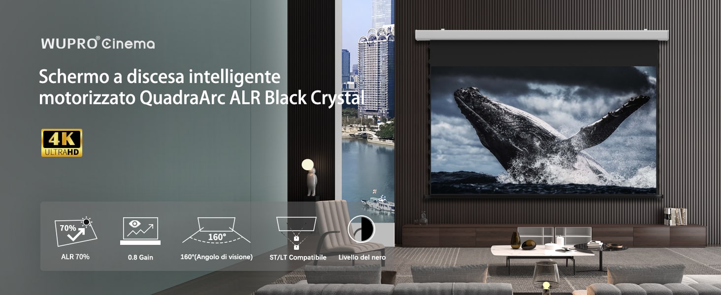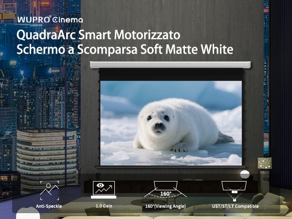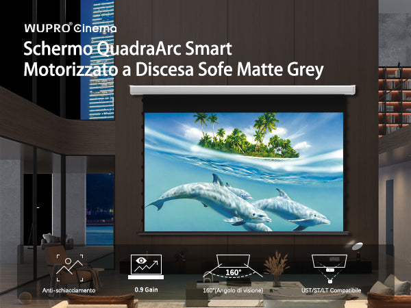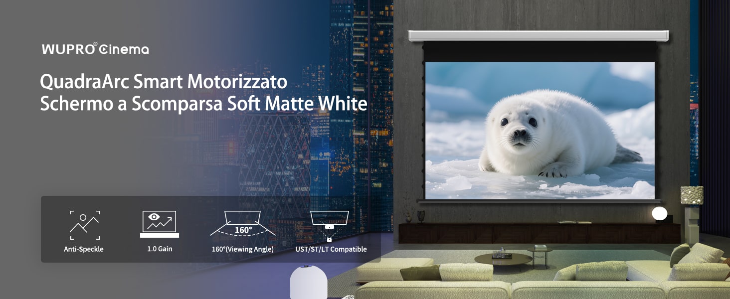 Schermo per proiettori Wupro Cinema QuadraArc Smart Motorised Pull Down per proiettori a lunga distanza