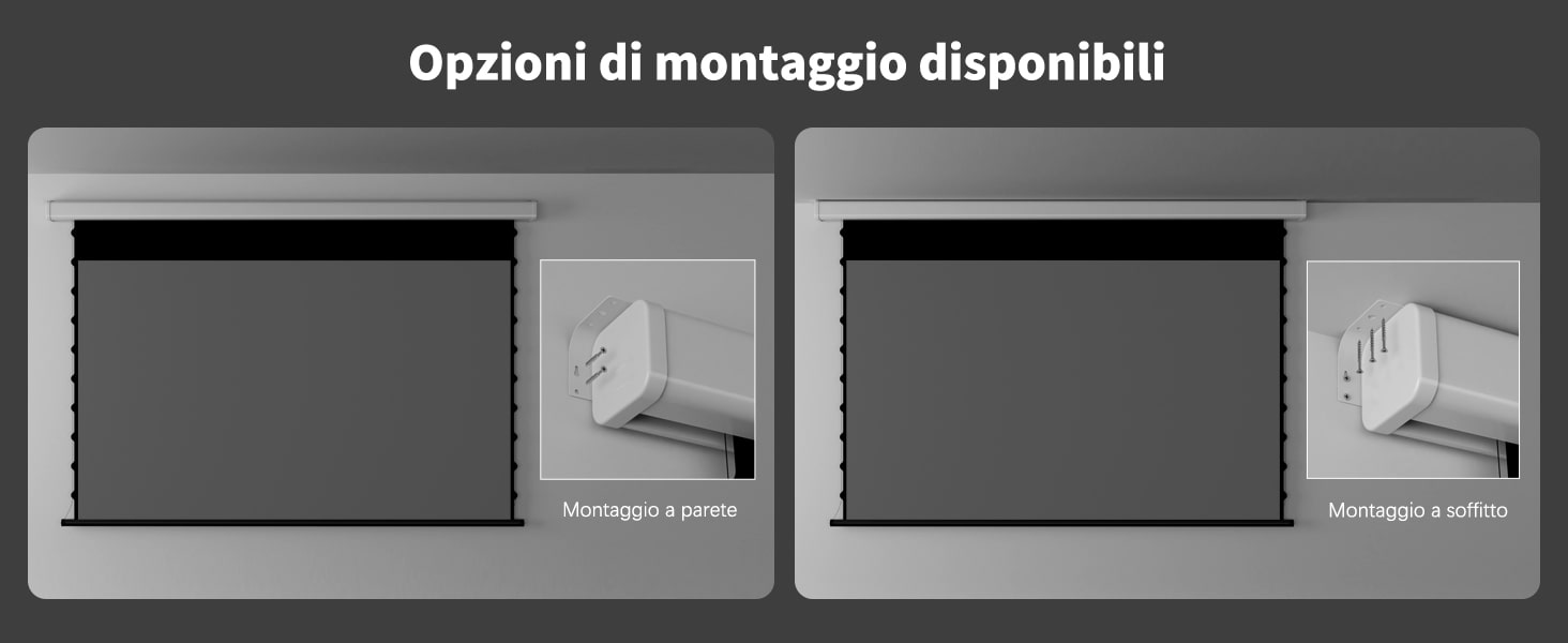 - Montaggio a parete o a soffitto: facilmente adattabile a vari scenari di utilizzo.