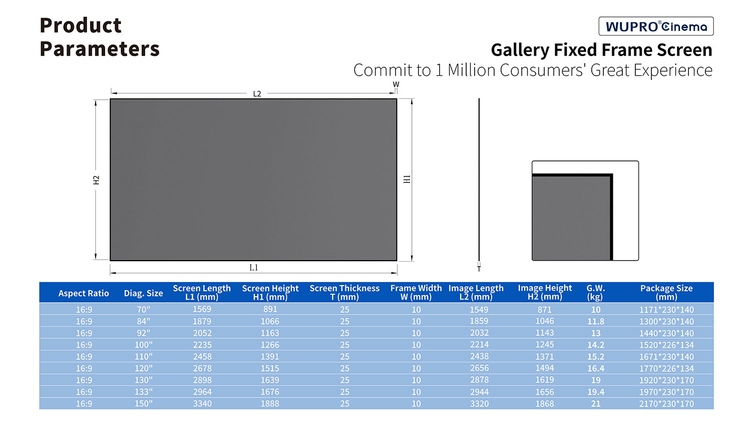 The soft grey matte finish has a gain of 0.9 (less than 1), offering uniform brightness without causing hotspots or glare effects.