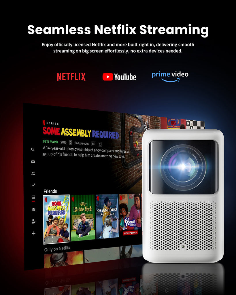 - SeamlessNetflix Streaming: Enjoy officially licensed Netflix and more built right in, delivering smooth streaming on big screen effortlessly, no extra devices needed.