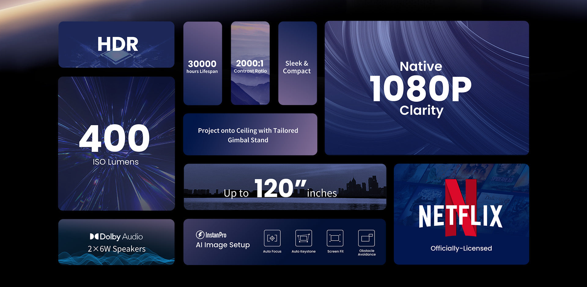 - Crystal-Clear Picture:True & Native 1080p Resolution,Dive into 2000:1 Contrast,HDR10