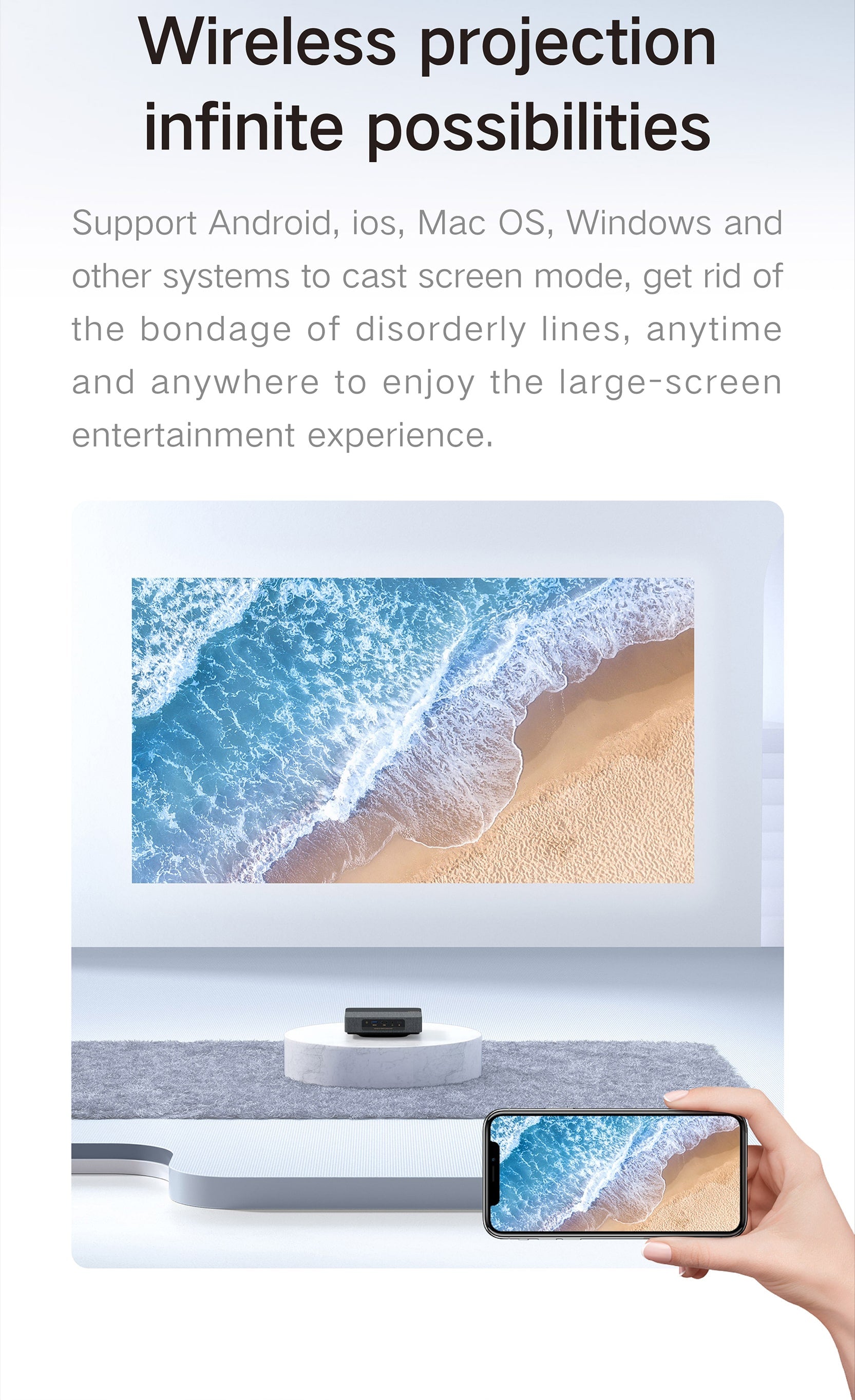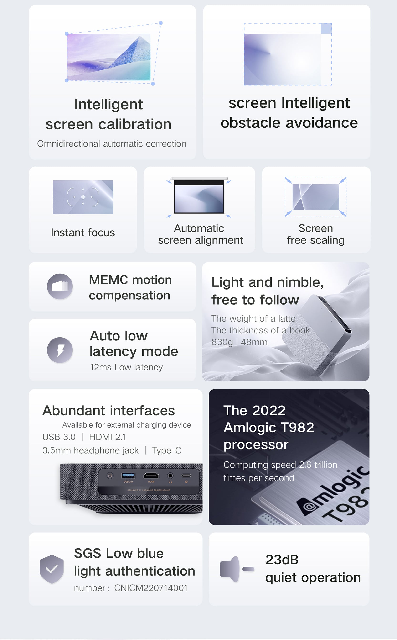 When the ambient temperature is 25°C, the sound of the projector is less than 30dB, which does not affect the viewing experience at all and can be used with confidence.