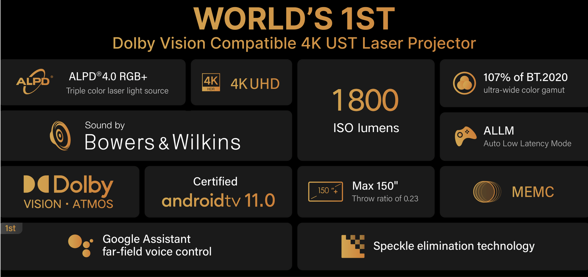- Pierwszy na świecie projektor UST z obsługą Dolby Vision i Atmos