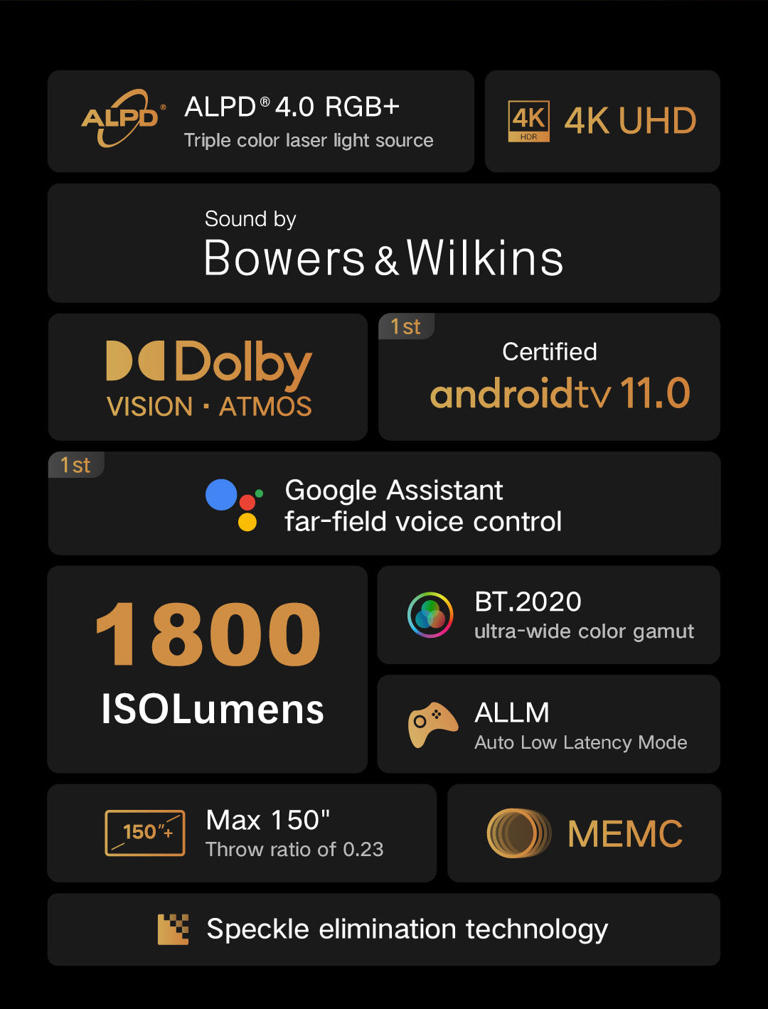 4K UHD and speckle elimination technology guarantees that Formoive casts images with greatest brightness and precision.