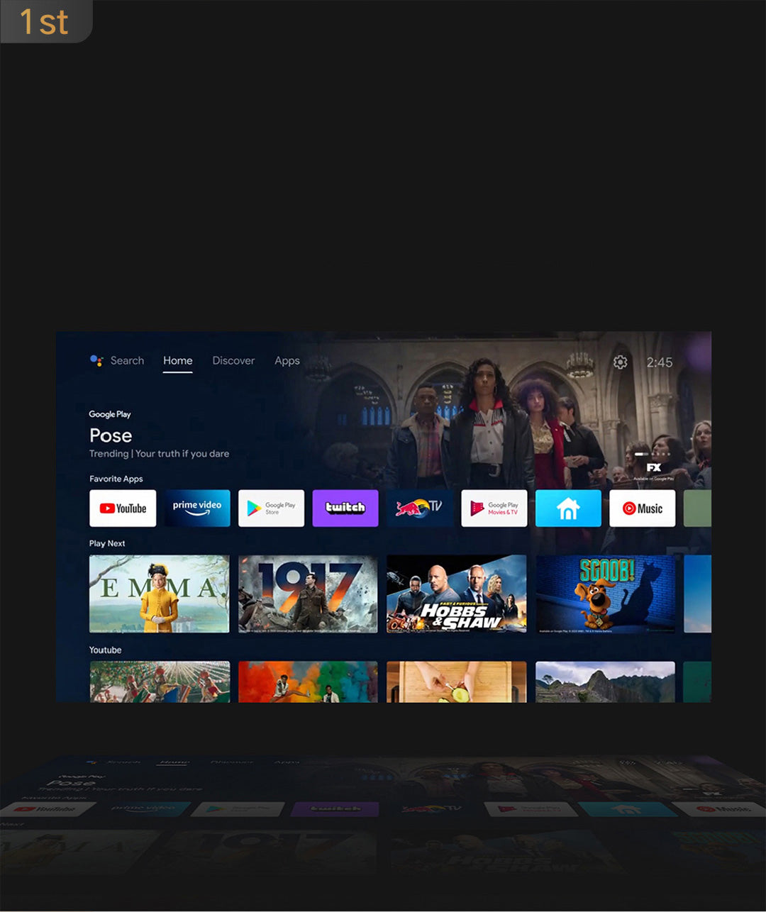 Formovie is equipped with Certified Android TV 11.0, Google Play and Chromecast to bring you a smoother entertainment experience on the large screen. It supports 5000+ APPs, like Disney+, HBO, Hulu and YouTube.