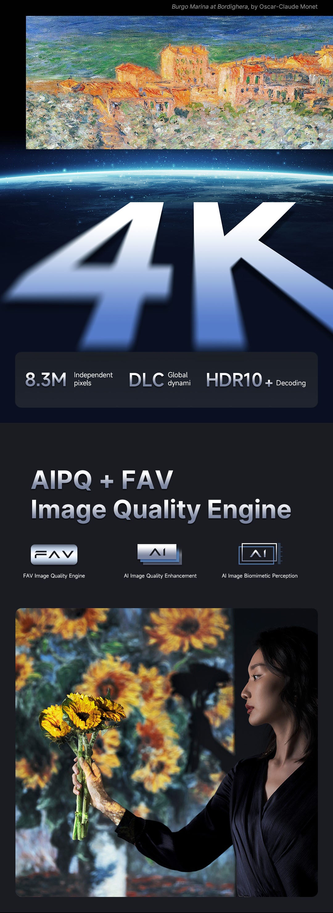 8.3M independent pixels make every frame come alive. With HDR10+ decoding and partition image processing, the picture quality is fully optimized1
