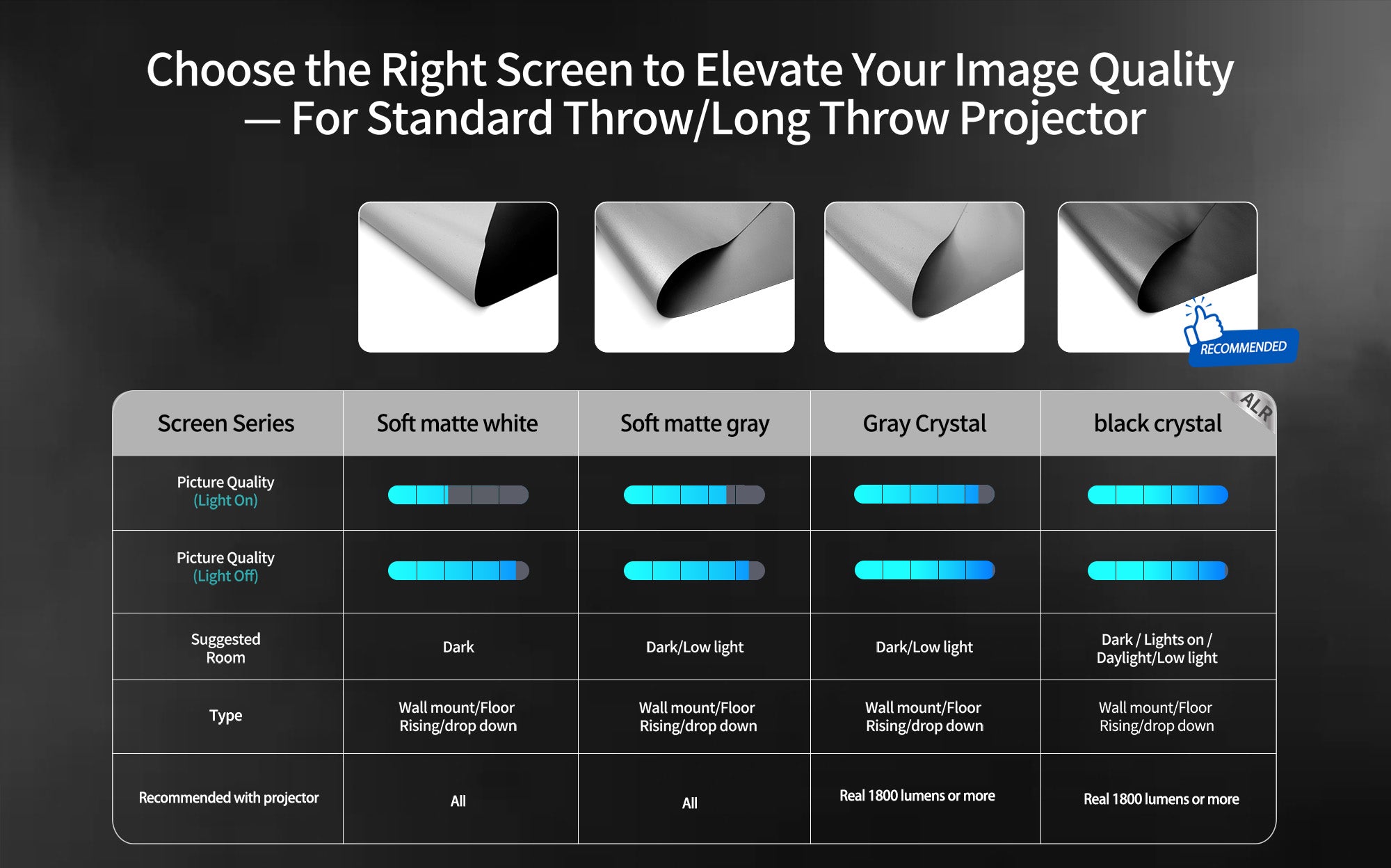 Zalecany model do stosowania z ekranem projekcyjnym WUPRO Cinema Black Crystal lub Gray Crystal.