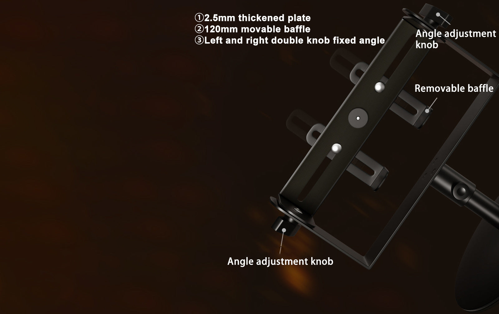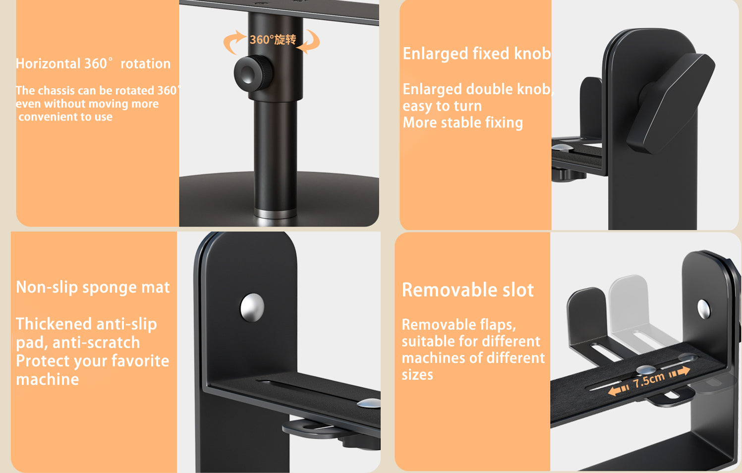 Szczegóły rzemieślnicze: Podkładka antypoślizgowa z gąbki; Zwiększone pokrętło mocujące; Wyjmowany slot na kartę