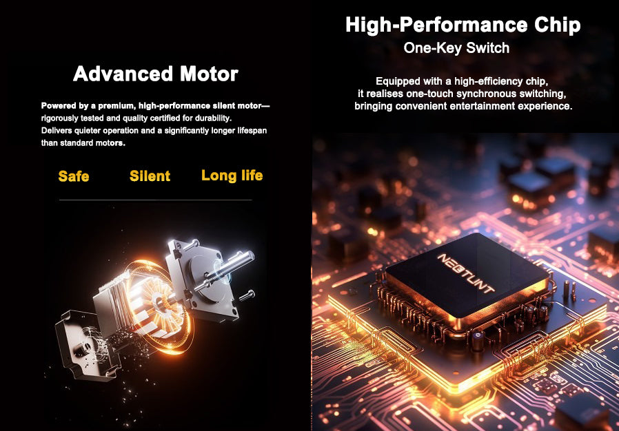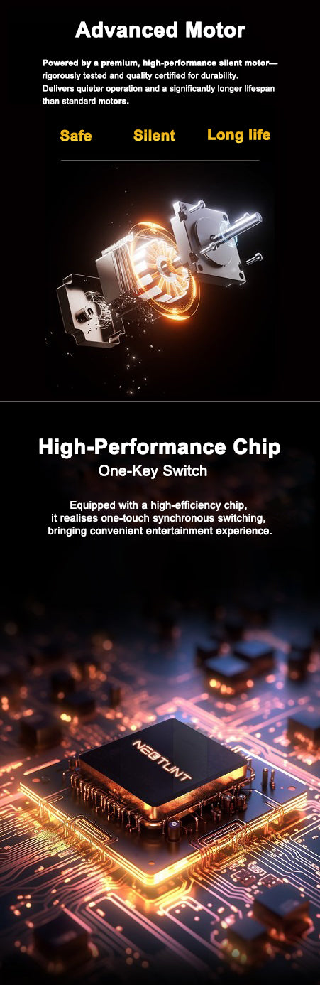 Equipped with a high-performance silent motor that ensures smooth, quiet operation with enhanced safety and extended lifespan. -
