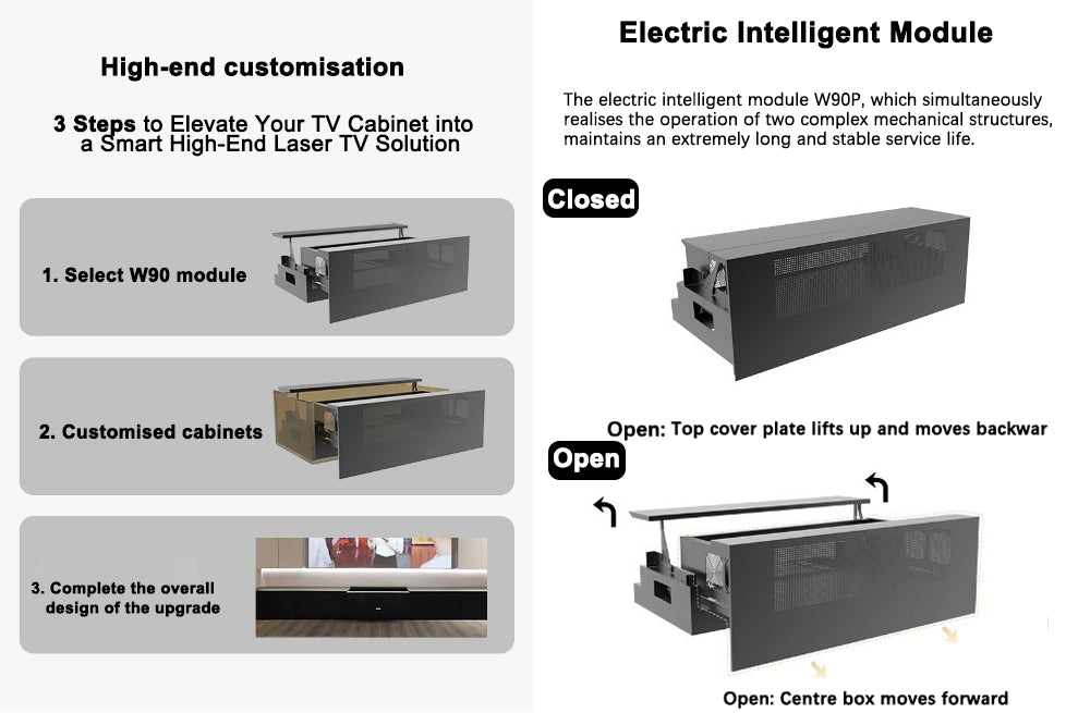 WUPRO W90 Smart Motorized Laser TV Cabinet Automated Sliding Module For DIY your cabinet