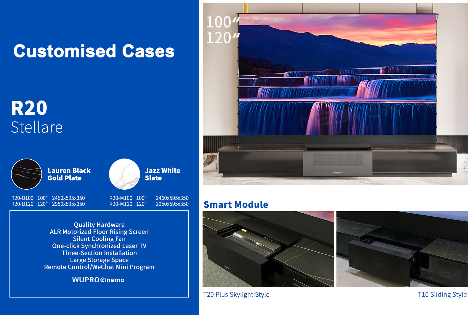Kino WUPRO Dostosowywany rozmiar/materiał Spiekany kamienny zmotoryzowany inteligentny zintegrowany laserowy telewizor z podnoszonym ekranem CBSP