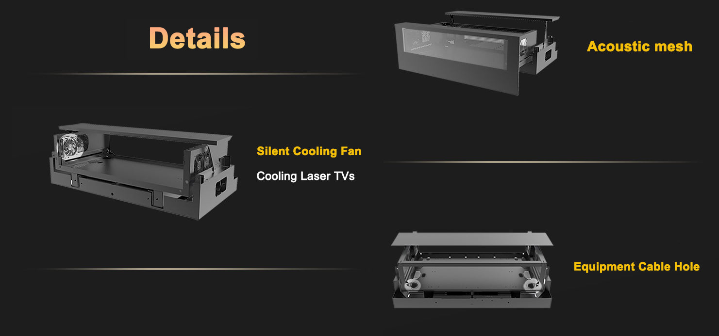 Integrated with an intelligent control system and USB trigger connection, allowing seamless one-touch synchronization between the laser TV and lift mechanism. -