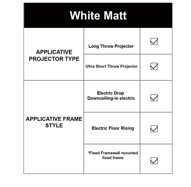 Wupro Cinema Miękki, matowy, biały ekran projekcyjny o stałej ramie do projektorów o długim i krótkim rzucie oraz UST