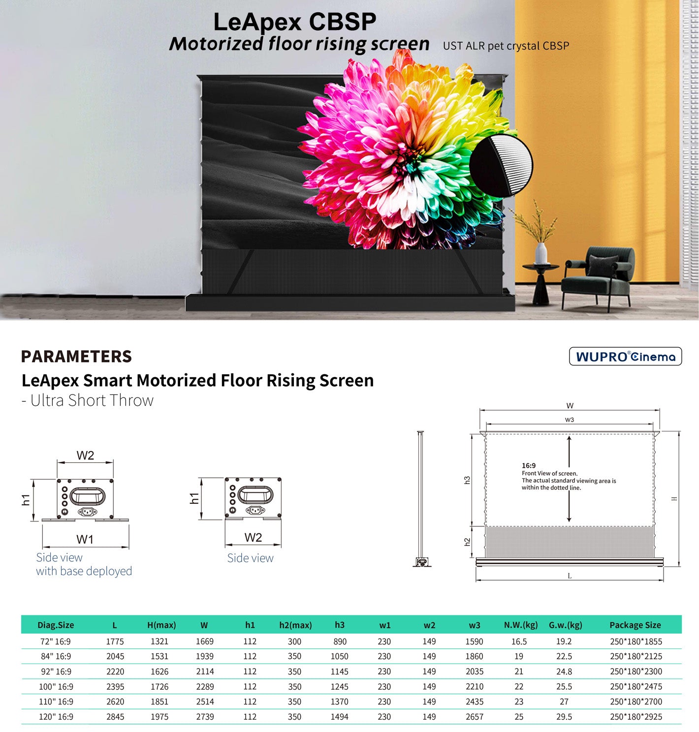 - If your screen is WUPRO LeApex series:We will customize it according to the following dimensions by default, or you can tell us the size you want
