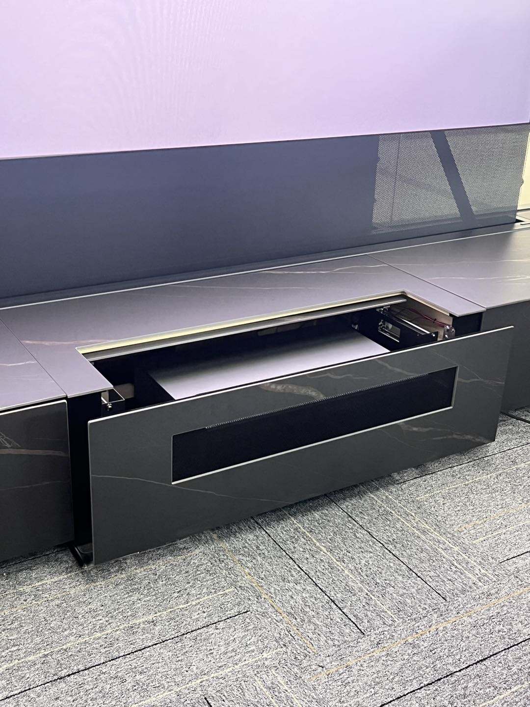 Kino WUPRO Dostosowywany rozmiar/materiał Spiekany kamienny zmotoryzowany inteligentny zintegrowany laserowy telewizor z podnoszonym ekranem CBSP