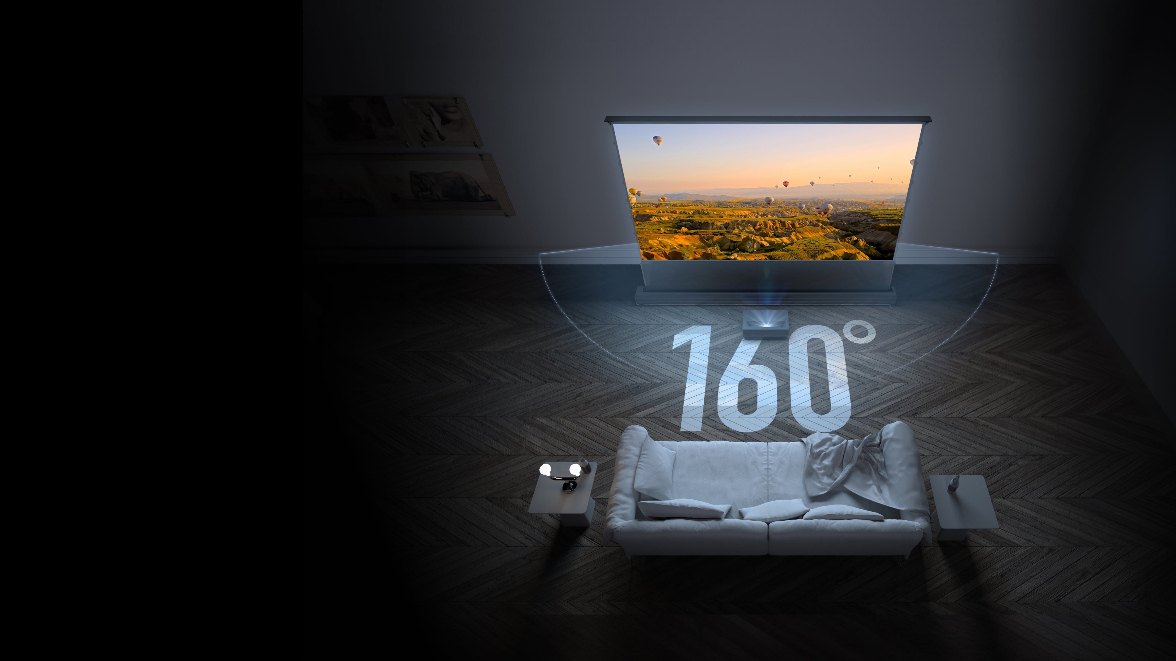 The Formovie 120" Floor Rising ALR Screen offers a 160° wide viewing angle, ensuring the perfect view for the whole family, no mattter where you sit.
