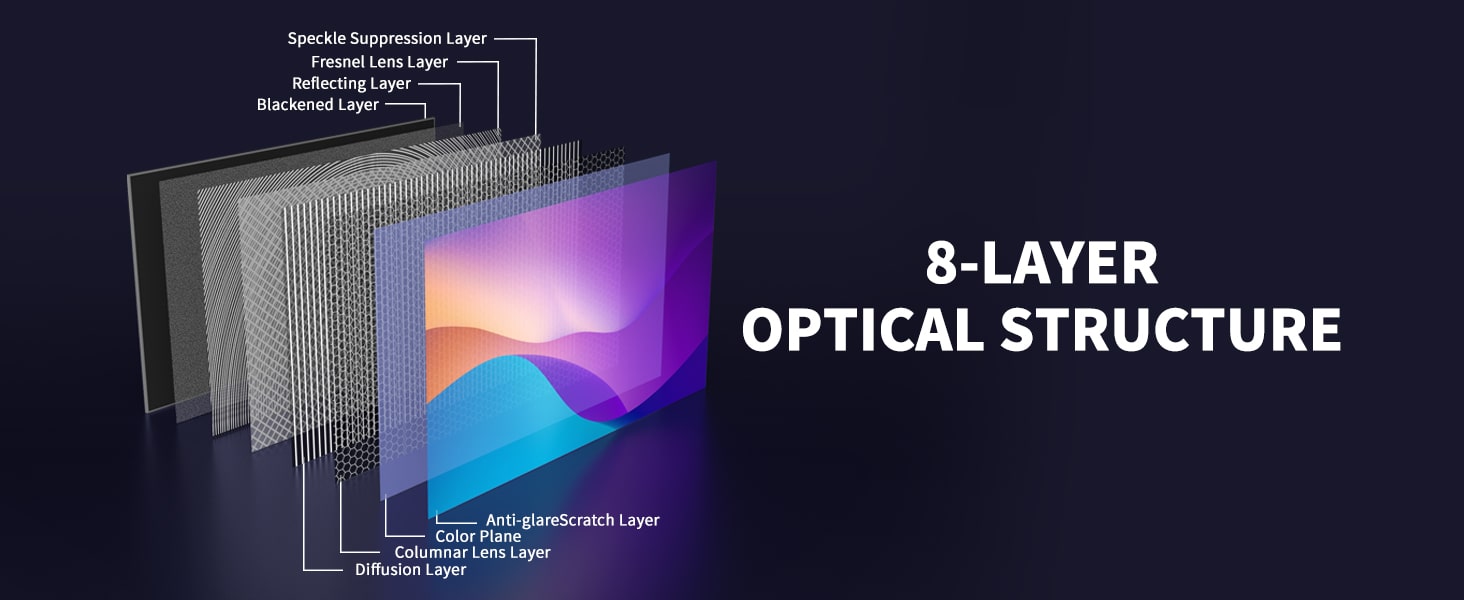 The screen's support for 4K, 8K or 3D is determined by the projector.WUPRO Cinema LeApex floor standing screen uses PET crystal material to optimize the image quality, improving colour accuracy, clarity and detail.