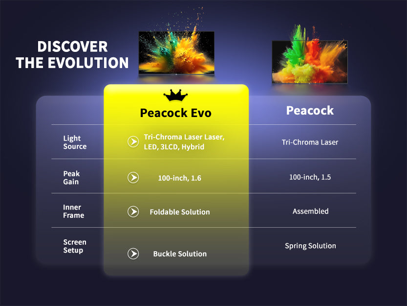 The Peacock Evo is primarily designed for Ultra Short Throw (UST) projectors and fully supports Tri-Chroma laser projectors.