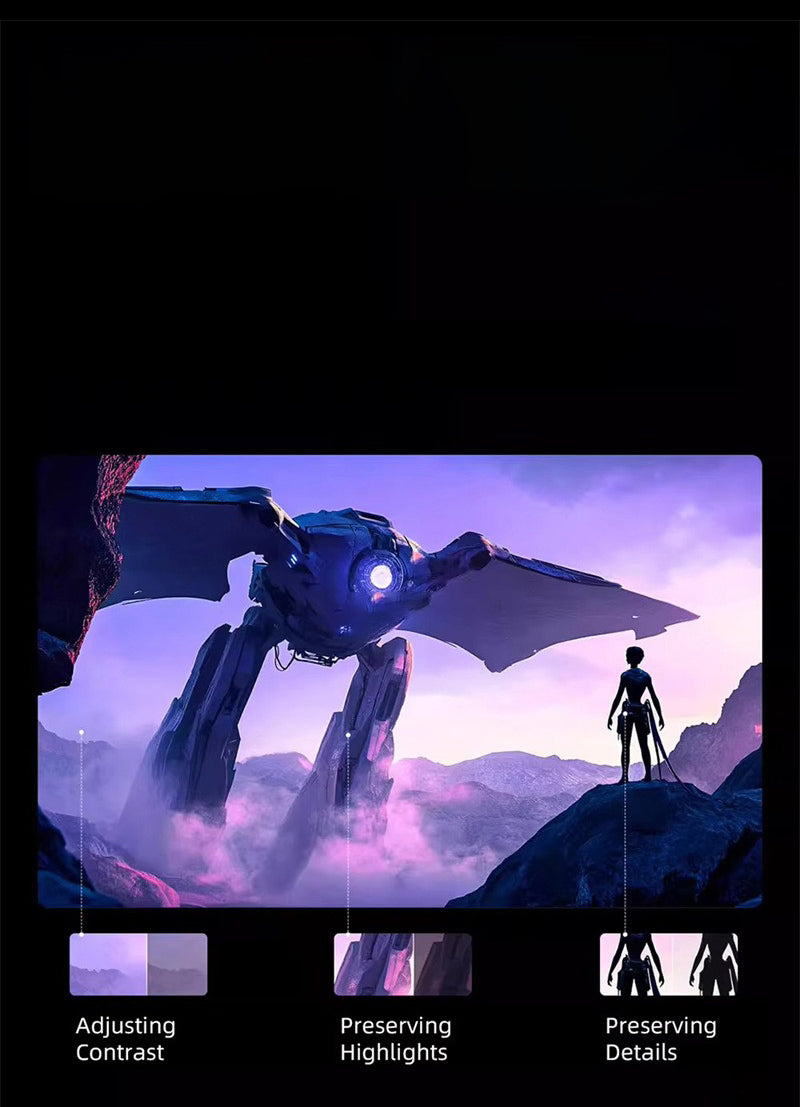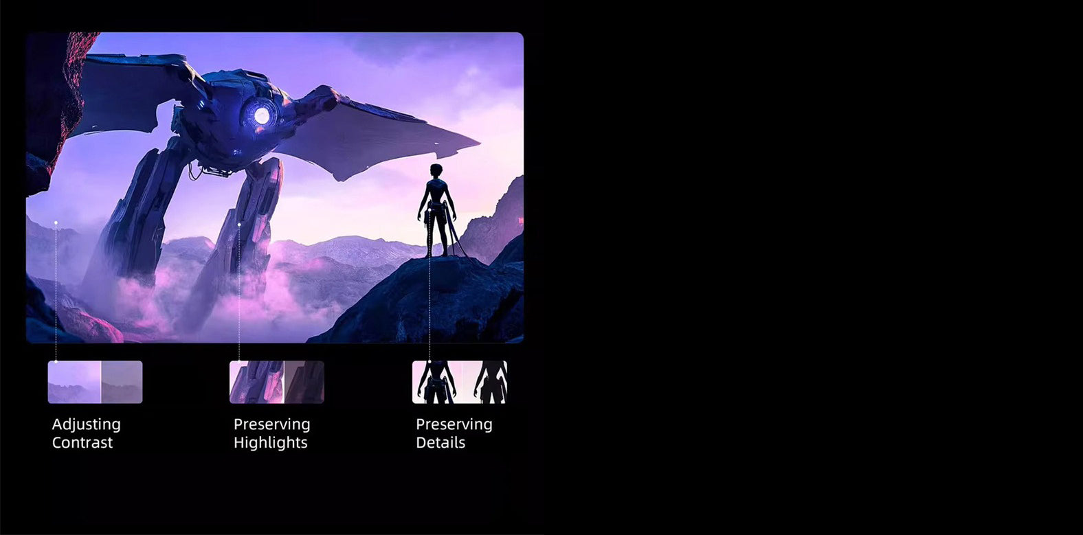 Dynamic HDR Mapping enhances HDR by adjusting brightness and contrast in real time,preserving details,colors, and balance without losinghighlights or shadows.