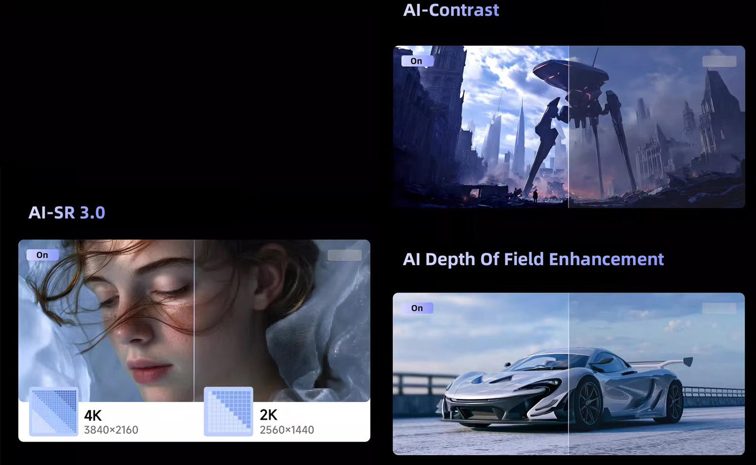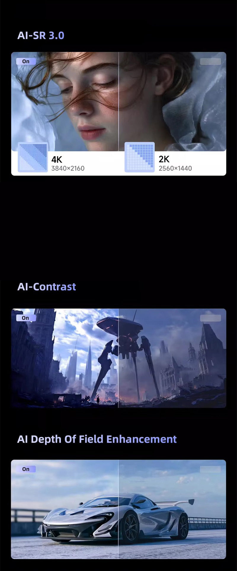 Transform every detail from Full HD to stunning 4K with Al-Super Resolution elevating your entertainment to a new level of brilliance and clarity
